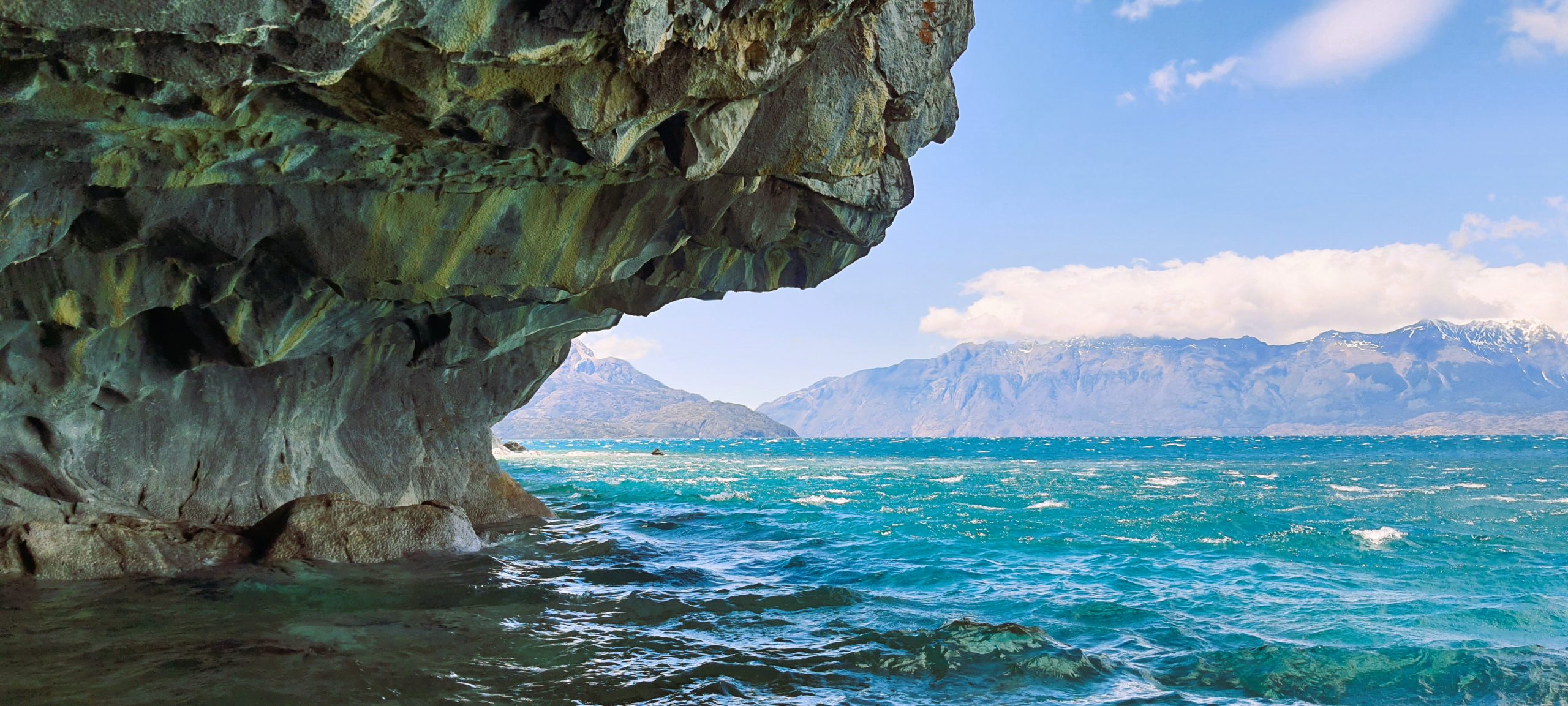 El recorrido continúa hacia Coyhaique, la capital regional, y luego a Puerto Río Tranquilo, donde realizamos una navegación inolvidable por el Lago General Carrera hasta las imponentes Capillas de Mármol, formaciones de piedra esculpidas por el agua a lo largo de miles de años.