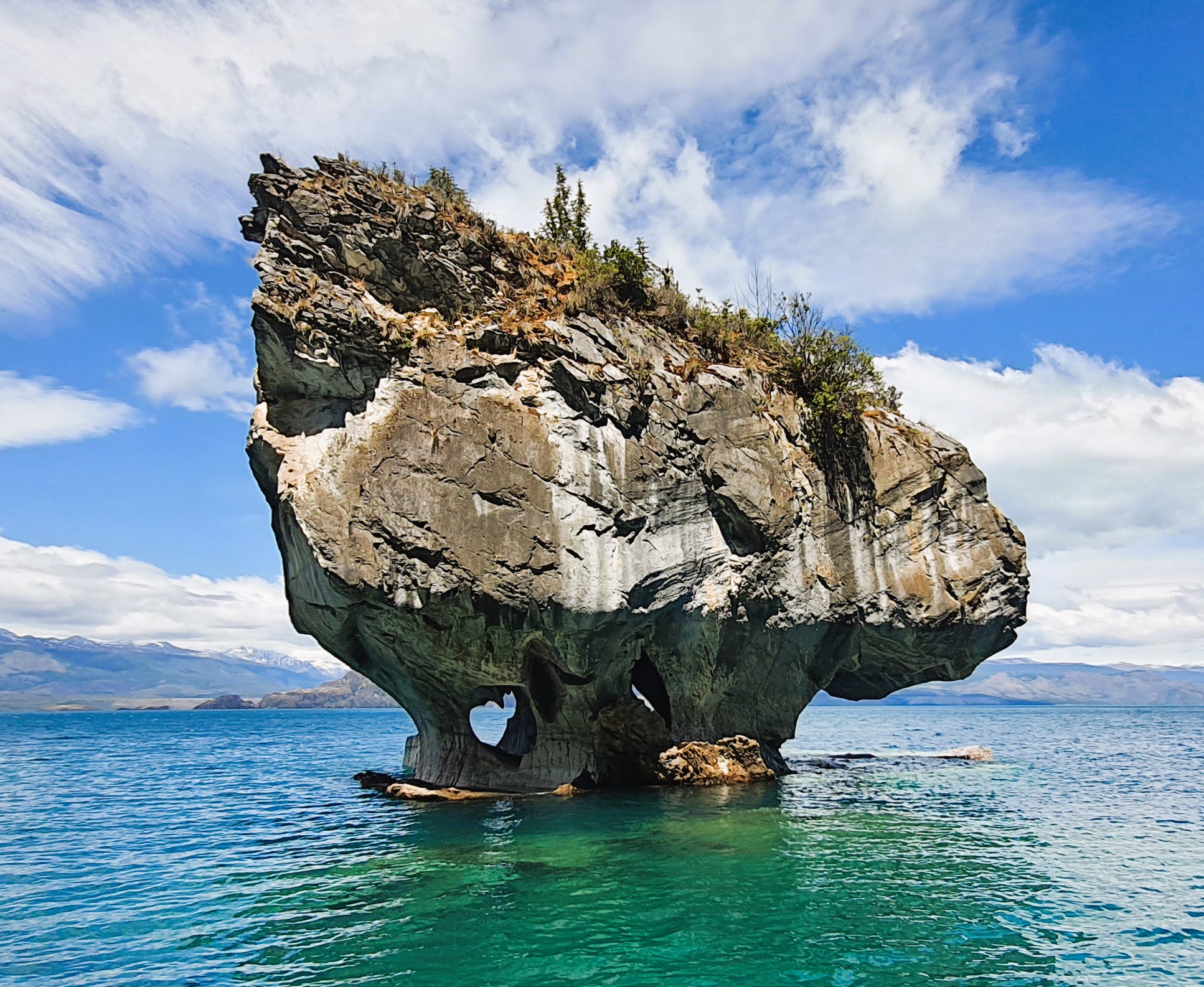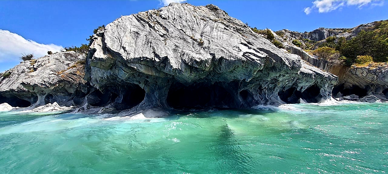 El recorrido continúa hacia Coyhaique, la capital regional, y luego a Puerto Río Tranquilo, donde realizamos una navegación inolvidable por el Lago General Carrera hasta las imponentes Capillas de Mármol, formaciones de piedra esculpidas por el agua a lo largo de miles de años.